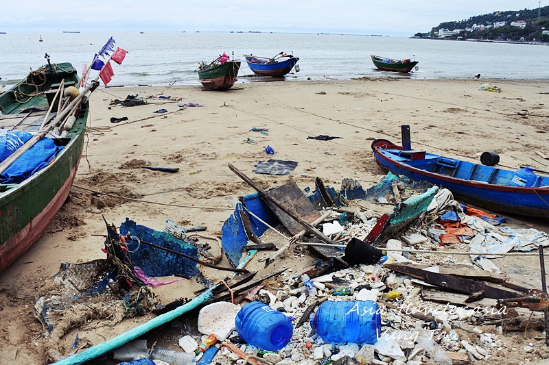 大破してしまった船!?漂流してきたゴミと一緒に無残な姿に